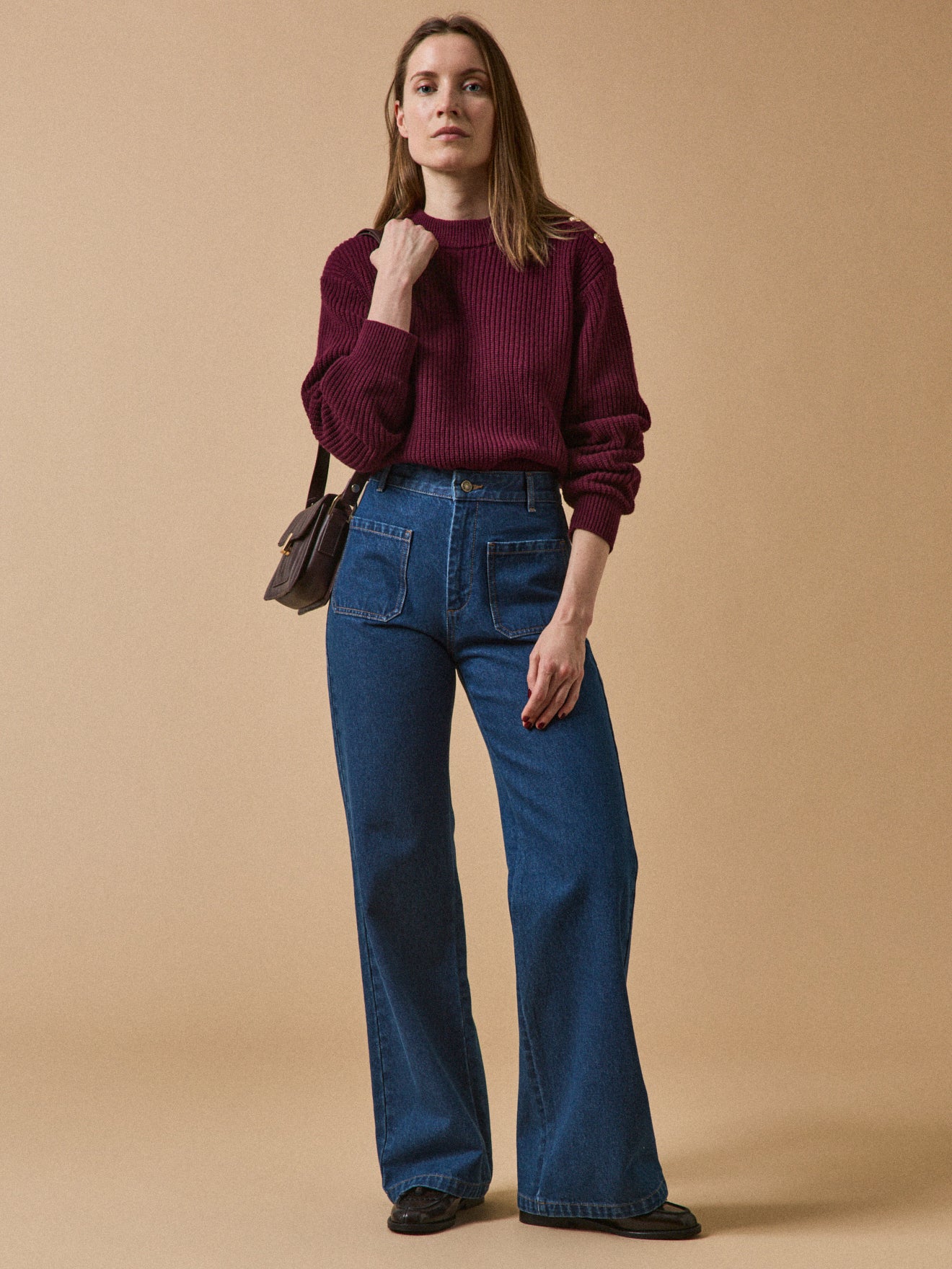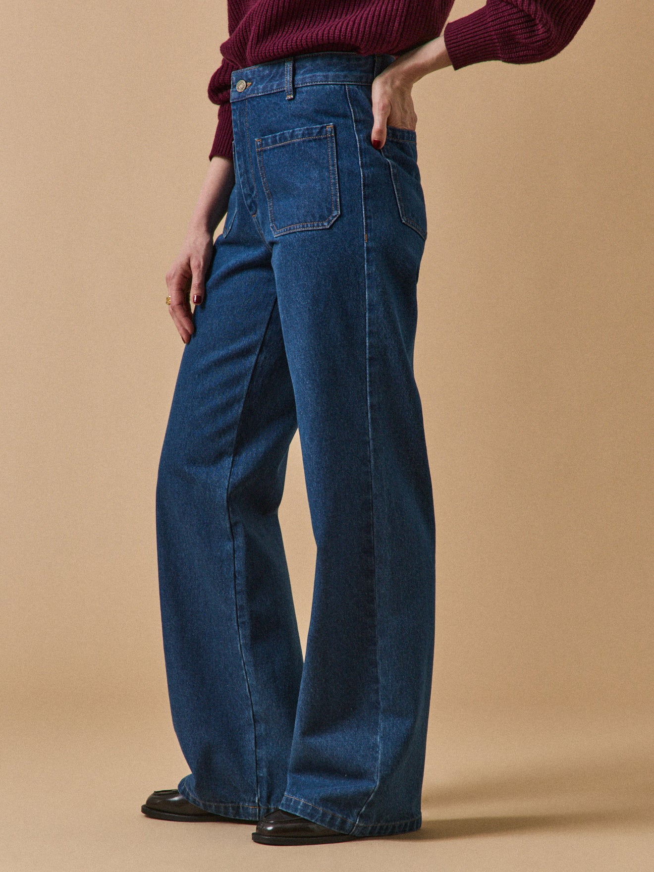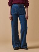 Patch pockets front and back and a flared leg. Made with hardwearing, certified organic cotton denim, these jeans deliver assertive style with casual elegance. Whether for the office, in town or off-duty, this easy piece will take you through the season.